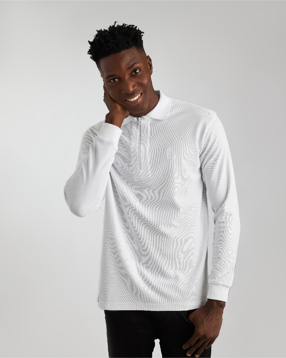 A modern take on a classic, our Long Sleeve Zipper Polo Shirt is perfectly tailored to elevate your everyday style. Crafted from a textured and breathable fabric, its soft hand feel assures utmost comfort. This Polo shirt serves both as a statement piece and a comfortable essential.
