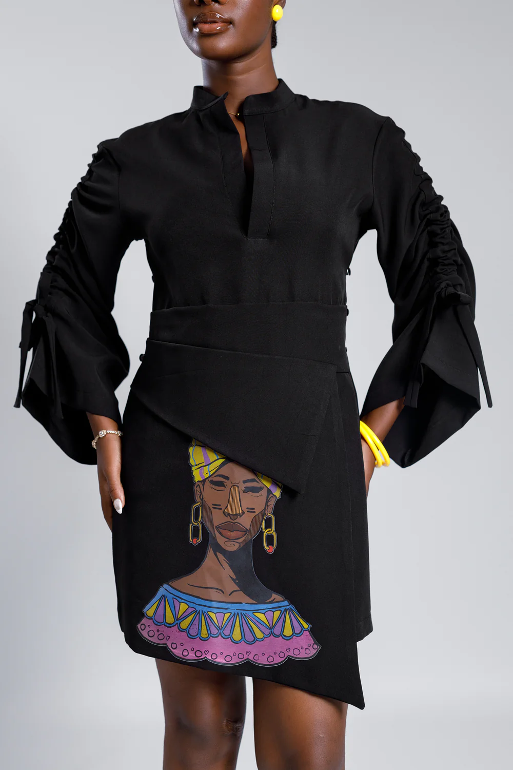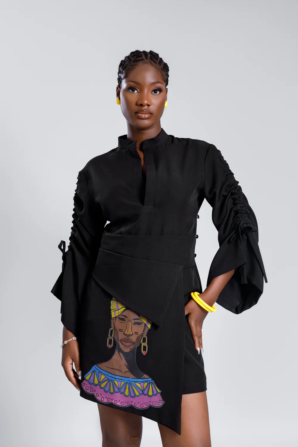 • Features a captivating African woman print on the lower front